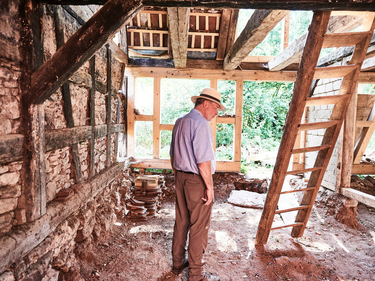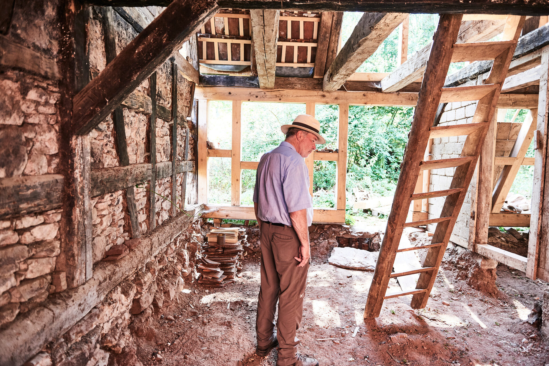 Schon bald beherbergt der Hof jede Menge wuselndes Federtier. Auch in den anderen Gebäuden geht es mittlerweile in großen Schritten voran: jahrhundertealte Öfen werden angeliefert und in tagelanger Puzzlearbeit aufgebaut