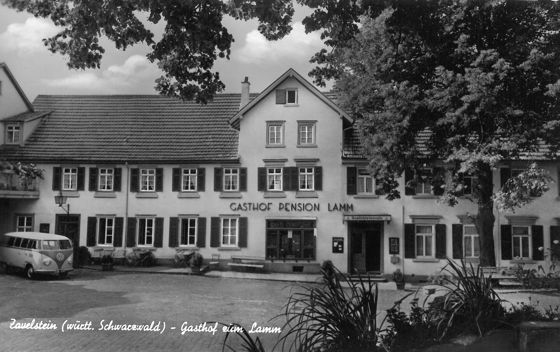 Der Name "KroneLamm" ist eine Verbindung der ursprünglichen Namen der früheren Traditionsgasthäuser hier in Zavelstein: Gasthaus Krone und Höhengasthof Lamm.
