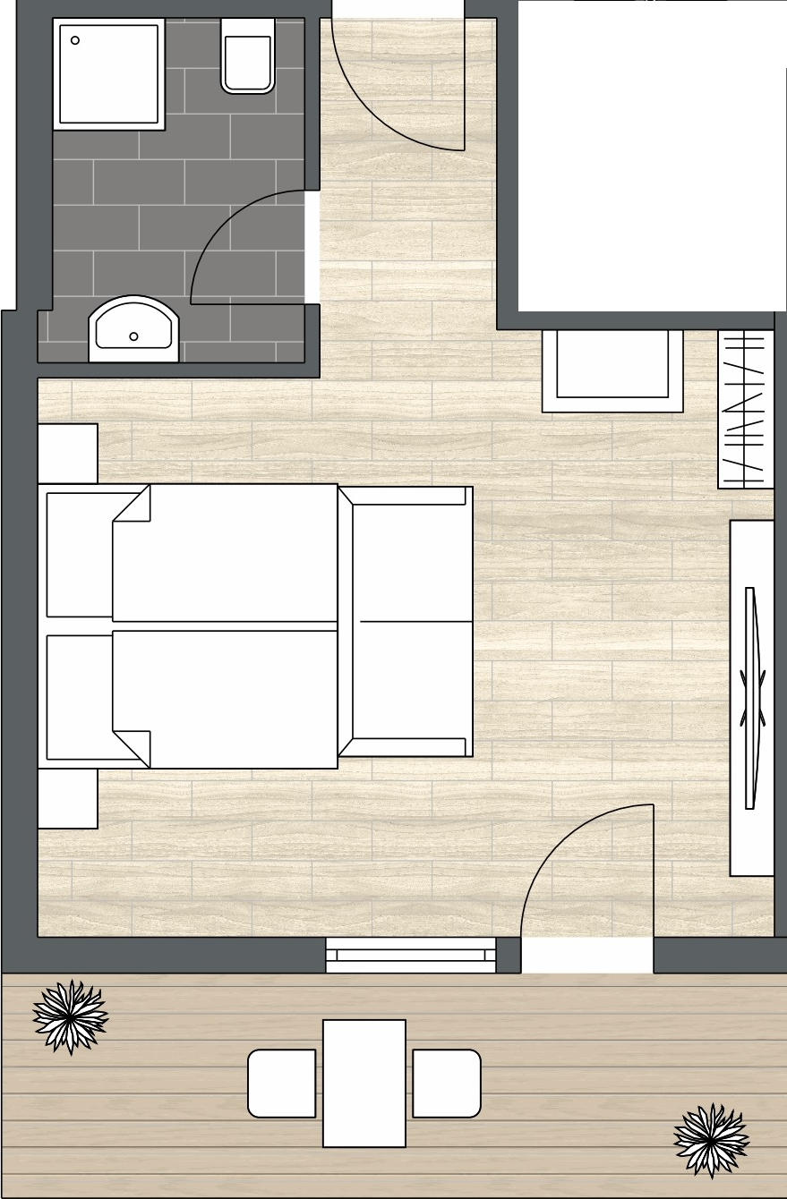 • Modern eingerichtete Doppelzimmer ohne Teppichboden im Gästehaus