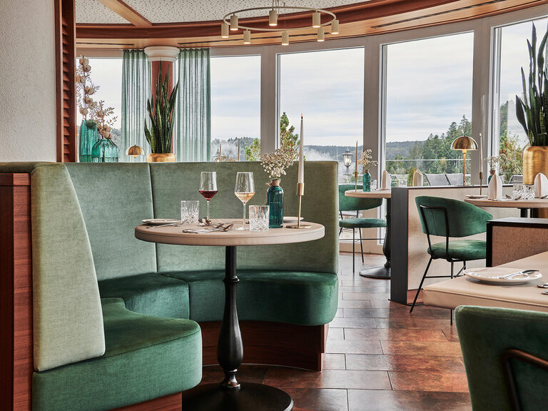 While you enjoy the delicious dishes, our large panorama windows offer a dreamlike view of the Black Forest.
